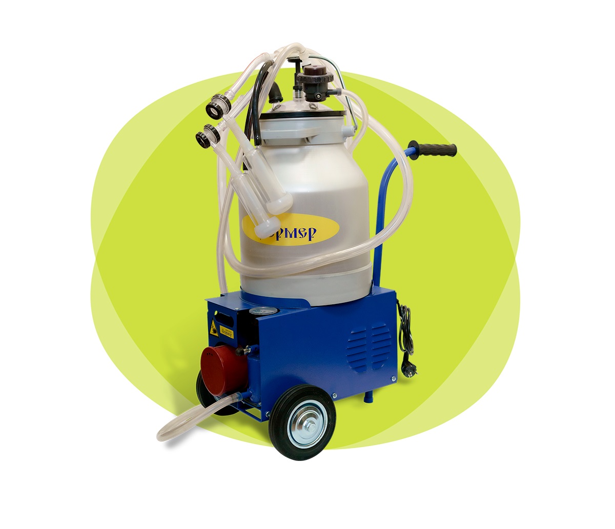 Аппарат оснащен коллекторным двигателем. Работа доильного аппарата в режиме доения основана на принципе отсоса молока доильным аппаратом из цистерны соска козы под действием вакуума, создаваемого вакуумным насосом. Молоко из доильного аппарата поступает в бидон по молокопроводу. Доильный аппарат работает по двухтактному принципу.