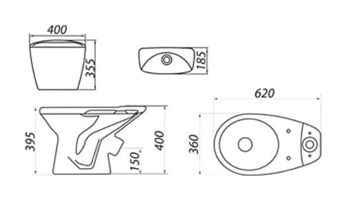 - Бачок с арматурой (боковой подвод воды, система однорежимного слива)